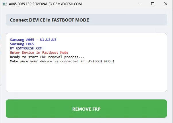 🚨 WORLD’S FIRST: Samsung A065F / F065 Offline FRP Removal Tool