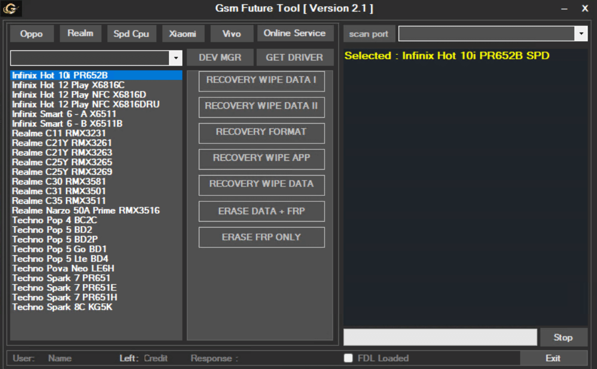 GSM Future Tool V2.1 is a lightweight Windows utility focused on day-to-day service tasks for Spreadtrum/Unisoc (SPD) Android devices, with an emphasis on OPPO and realme. This release is distributed free and operates without a login prompt. While the feature set currently prioritizes SPD targets, the interface also lists Xiaomi and Vivo sections, suggesting broader coverage may arrive in future updates.