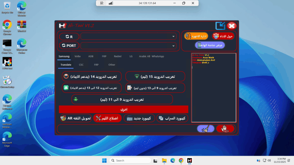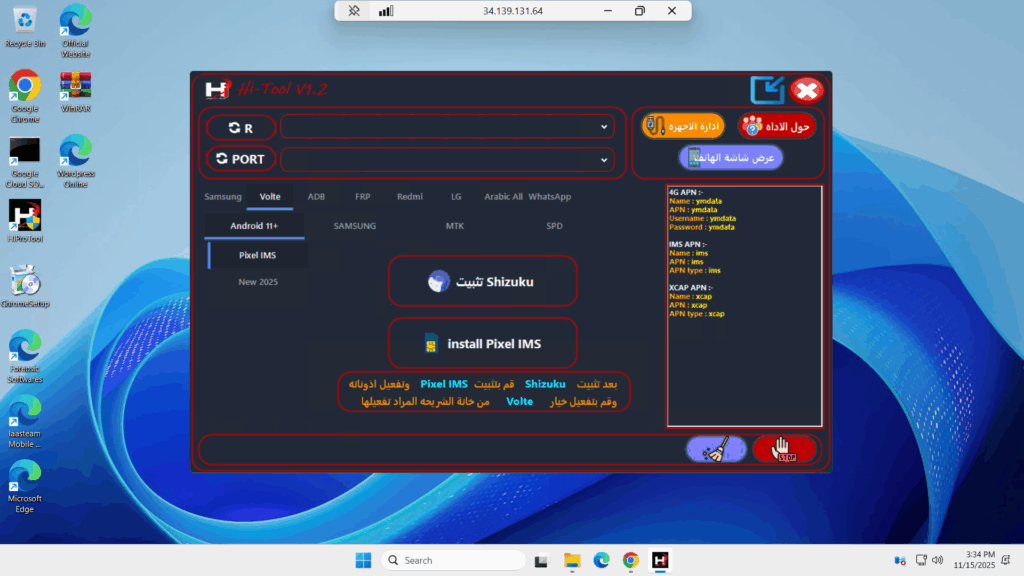 Hi-Tool v1.2 — Arabic/English Technician Suite: Language/CSC, VoLTE/IMS, FRP/MDM ADB, MTK/SPD Menus