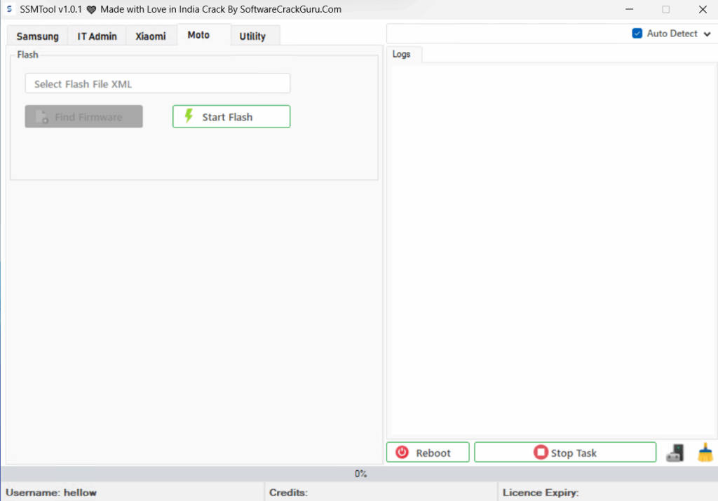 – Select XML flash file, firmware finder, one-click start flash